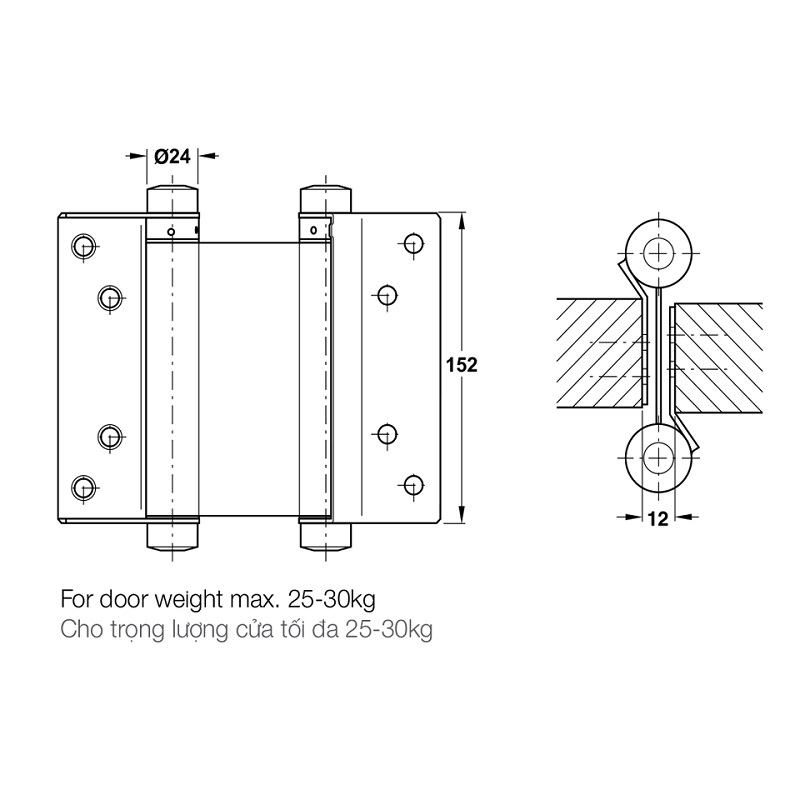 Thông số kỹ thuật của bản lề cửa 2 chiều Hafele 927.97.030