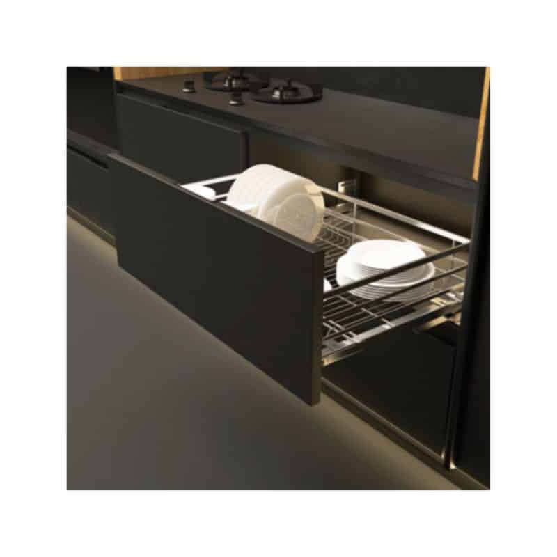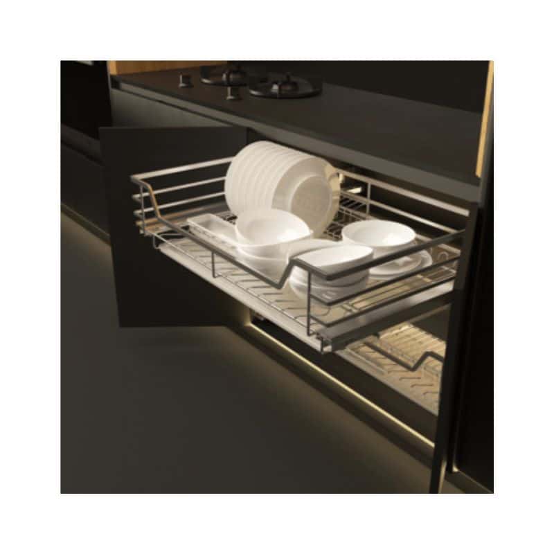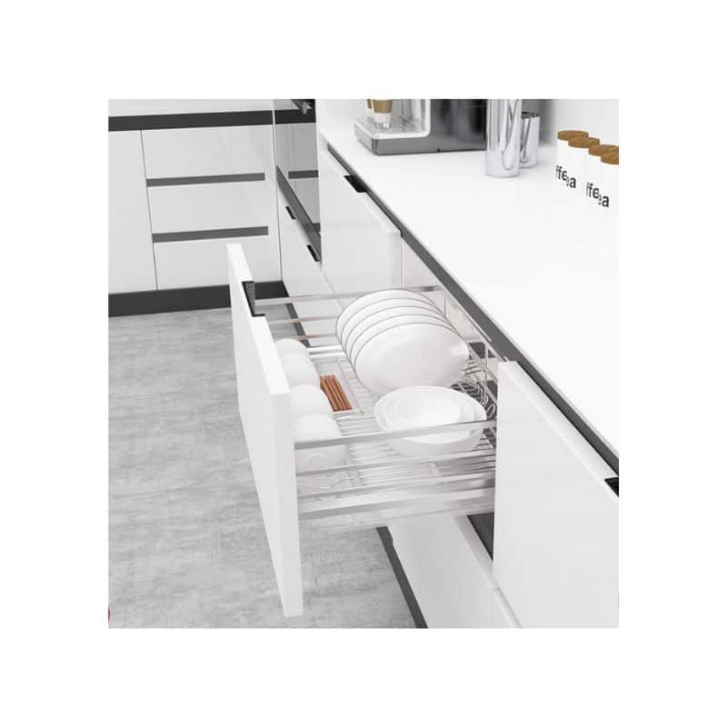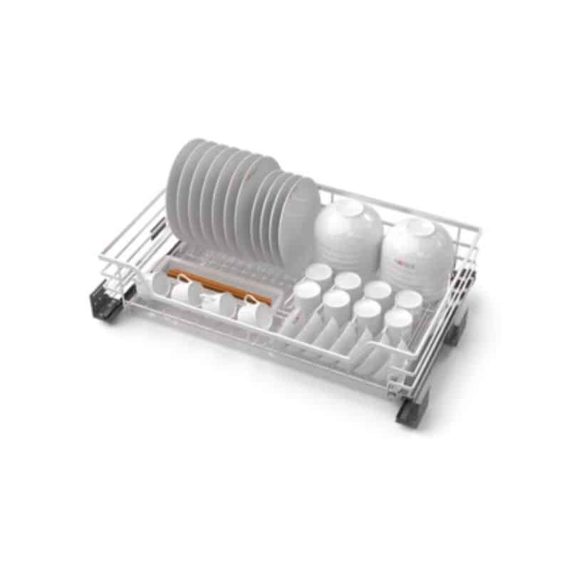 - Bộ rổ, bộ ray giảm chấn, khay hứng nước, 2 thanh đỡ khay, 2 bas mặt trước, 2 bas hậu cho ray trượt, 2 bas giữ ray, 12 ốc lắp đặt.