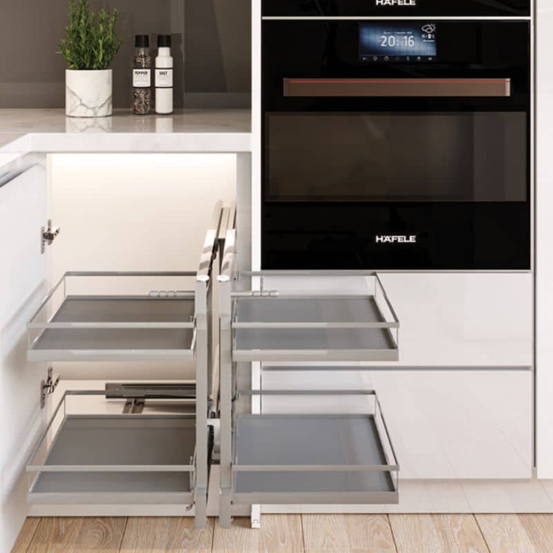 - Hệ thống mở toàn phần cho phép di chuyển cả 4 khay ra ngoài góc tủ