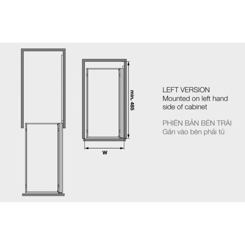 - Phiên bản bên trái : gắn vào bên phải tủ