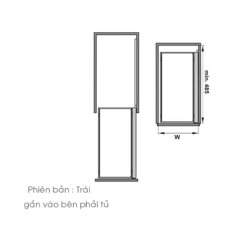 - Chiều cao tối thiểu hộc tủ: 599 mm