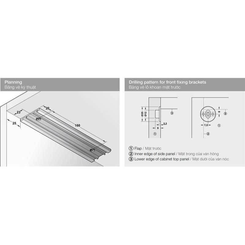 Phụ kiện cáp đỡ mặt trước với Bas điều chỉnh Hafele 365.46.051