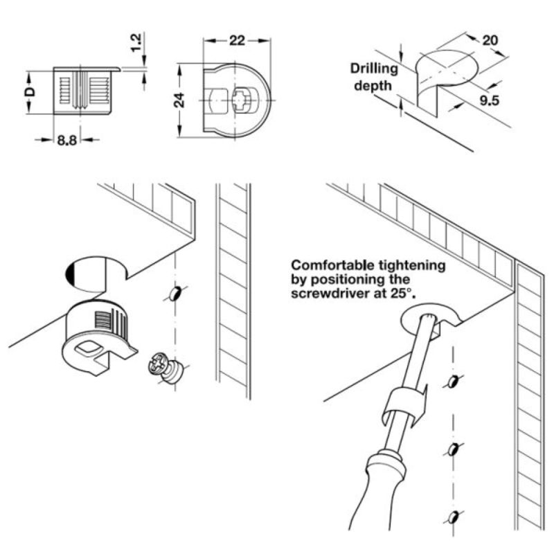 Tính năng của thân ốc liên kết cho gỗ dày từ 19mm Hafele 263.10.105